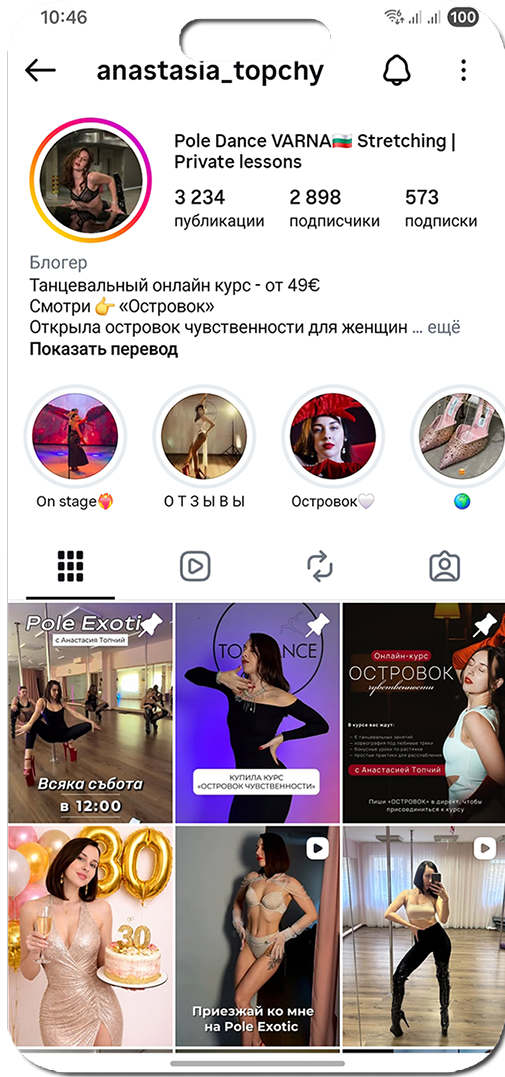 Создатель авторских программ обучения по направлению pole dance. Руководитель школы танцев Top Dance Varna в Варна и основатель собственного шоу-балета.